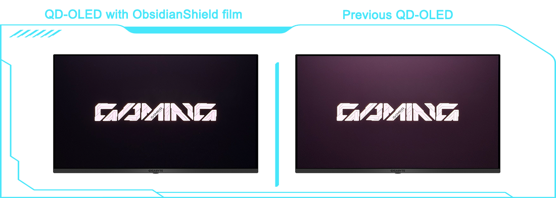 全新 ObsidianShield 抗反射鍍膜可將感知黑階表現提升最高 40%,即使在明亮環境下,依然能維持深邃黑階與鮮豔色彩,強化畫面對比度與清晰度;同時,螢幕表面硬度由 2H 升級至 3H,提供高達 2.5 倍的防刮能力,有效提升日常使用的耐用性。