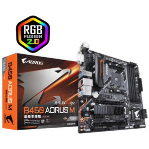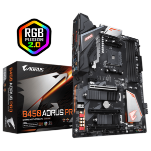 AMD B450 AORUS主機板搭載複合式數位電源設計, 雙NVMe PCIe Gen3 M.2插槽, Realtek千兆網路搭載25KV抗靜電保護, 超耐久抗硫電阻, 符合CEC 2019規範, RGB FUSION 2.0