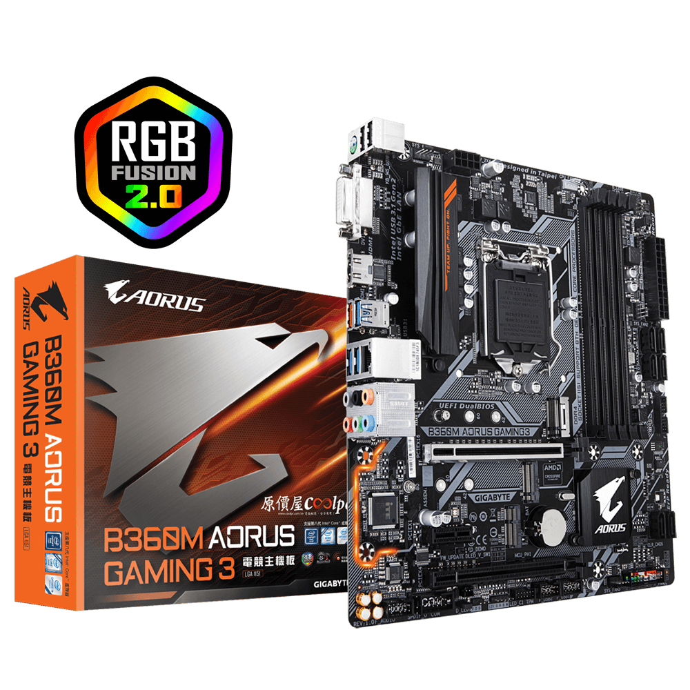 Intel B360電競主機板搭載可升級Intel® CNVi 802.11ac Wave2 2T2R無線網路插槽, 兩組超高速 PCIe Gen3 M.2插槽, RGB Fusion 2.0, 支援數位LED燈條, USB3.1 Gen2 Type-A連接埠, 25KV靜電保護Intel千兆乙太網路搭配cFosSpeed, 超耐久抗硫電阻與DualBIOS™ 設計