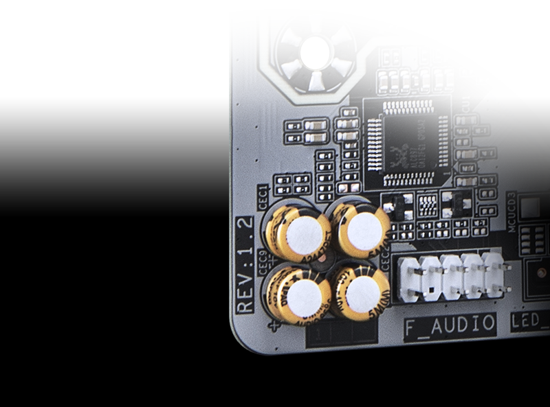 GIGABYTE主機板採用最高品質的高階音效處理電容,這些專業的音效處理電容提供最高品質的音效解析能力及聲音延展擴大效果,為專業遊戲玩家創造最逼真的音效體驗。