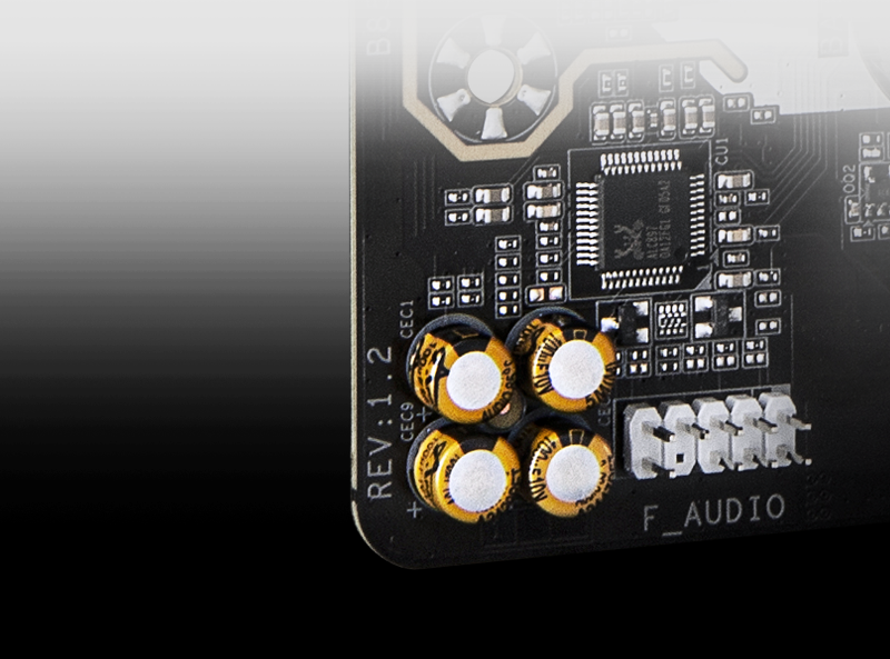GIGABYTE主機板採用最高品質的高階音效處理電容,這些專業的音效處理電容提供最高品質的音效解析能力及聲音延展擴大效果,為專業遊戲玩家創造最逼真的音效體驗。