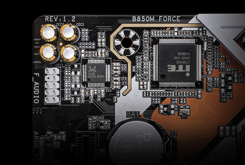 為了強化靜電防護並避免音效失真,GIGABYTE 主機板內建噪音隔絕設計,透過主機板內建的模擬感應元件設計,降低主機板上潛在的靜電傷害。