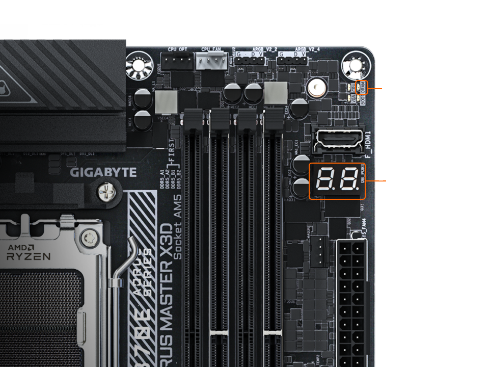 POST Code診斷 + 即時溫度監控二合一. 開機階段就能即時掌握 CPU/SYS/VRM 關鍵溫度數據, 無需進入Windows即可全方位溫控監測。
