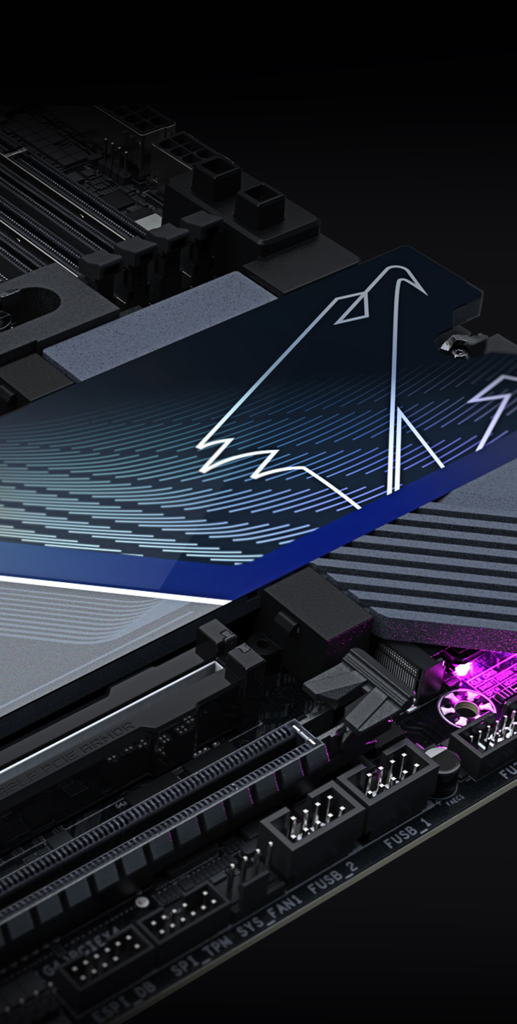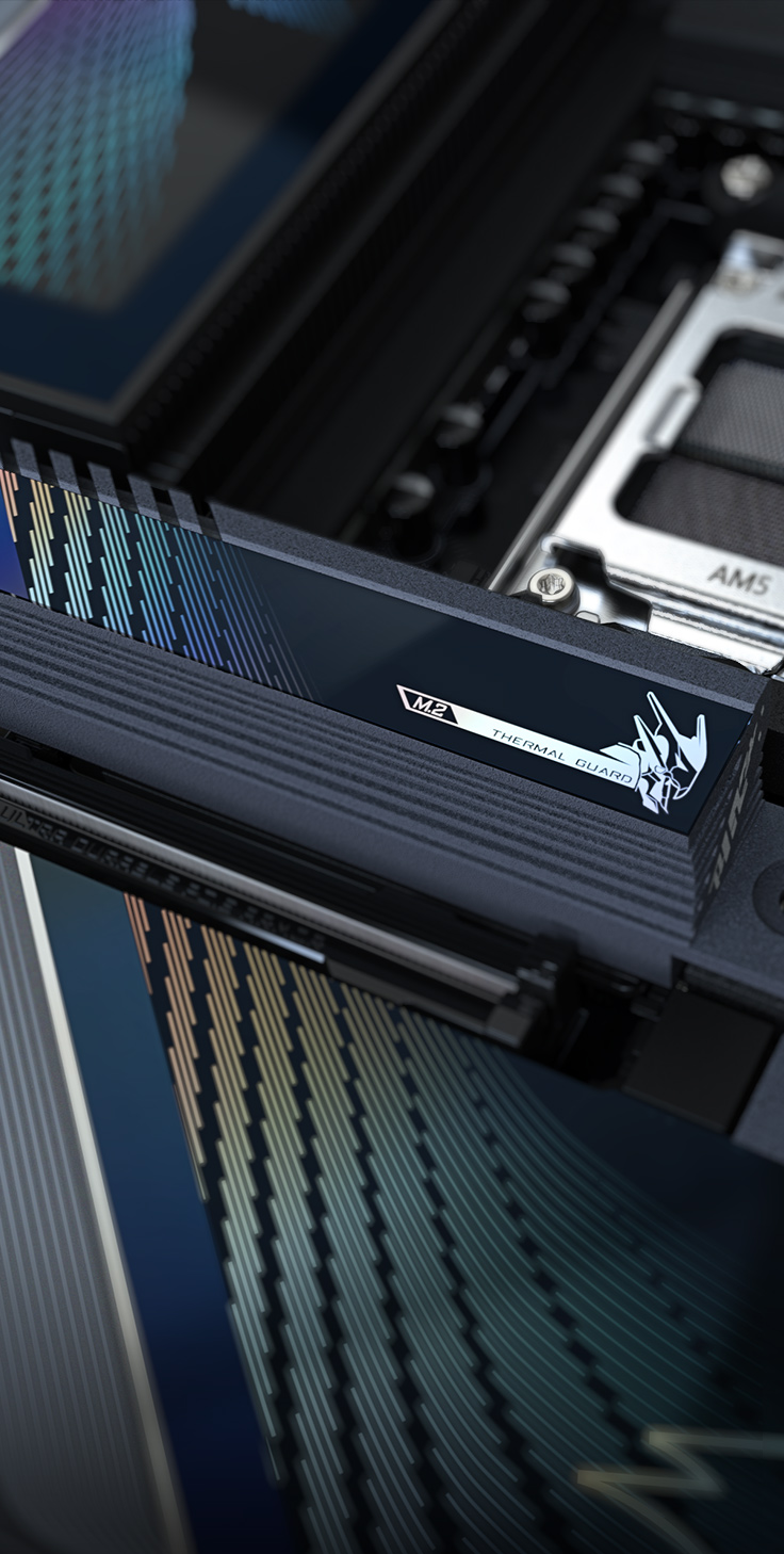 • 高效的整體散熱效能 : VRM Thermal Armor Advanced & M.2 Thermal Guard L & M.2 Thermal Guard Ext.