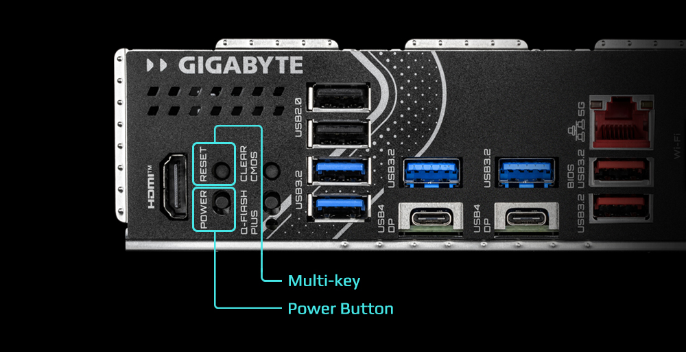 將Power/Reset/Clear CMOS/Q-Flash+ 按鍵移至後窗的設計,提供極致便利的操作體驗。