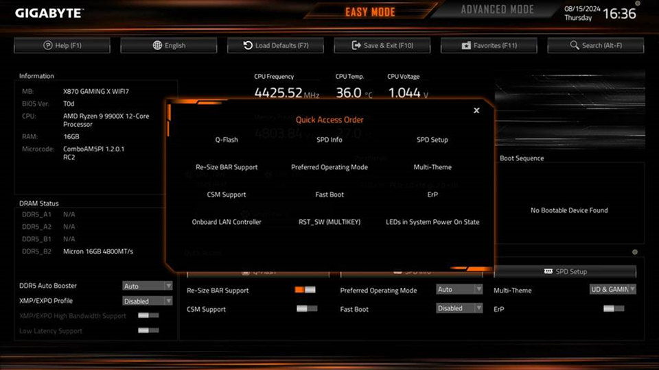 技嘉UC BIOS的Quick Access 功能可從Advanced模式中選擇9個關鍵選項直接帶入簡易模式,無需繁複操作即可快速調整。