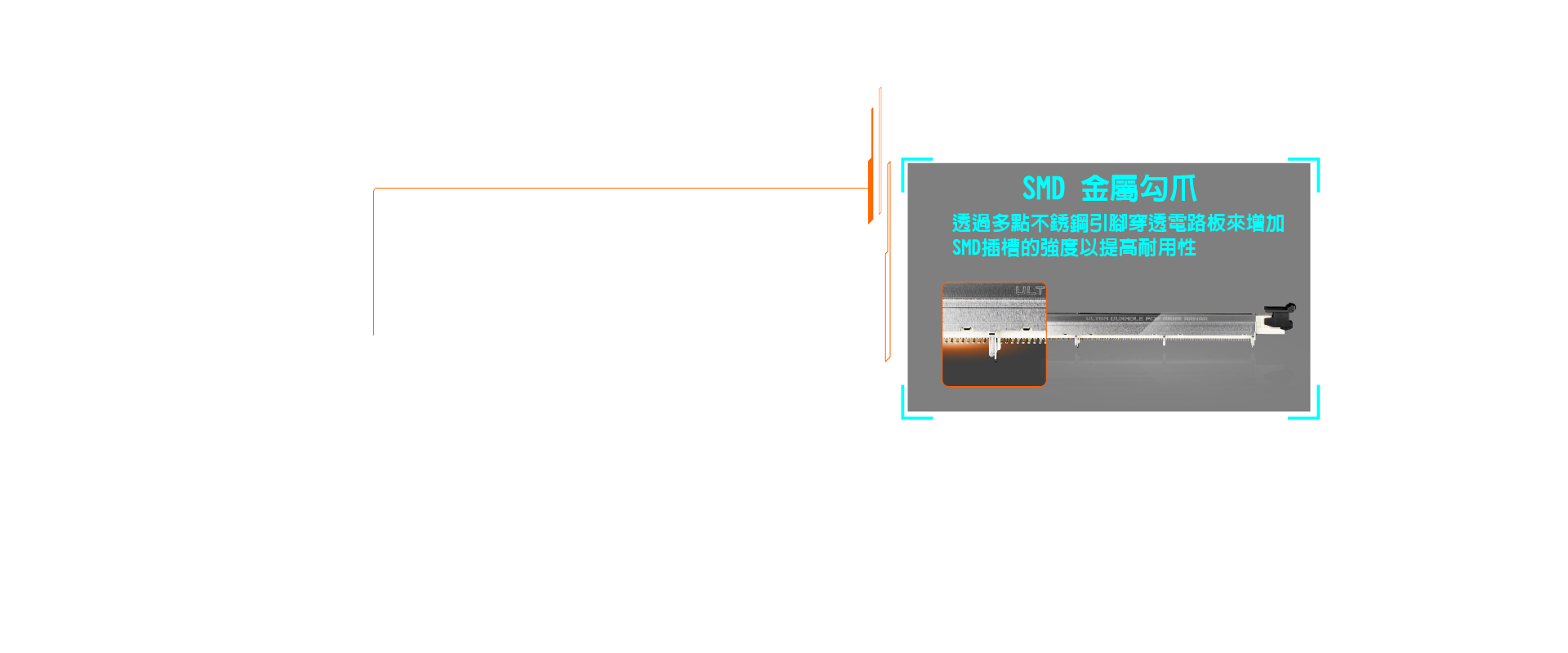 - 超耐久™ SMD PCIe 5.0插槽防護裝甲