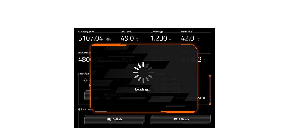 - 全新友善使用者界面: BIOS多元主題畫面、一體式水冷風扇控制和Q-Flash 自動掃描