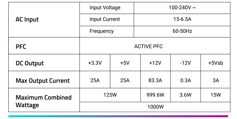AE1000PM PG5 ICE 可以承受高達 3 倍的 GPU 超載瞬間輸出和 2 倍的總功率超載瞬間輸出。 它完全符合 Intel ATX 3.1 標準,支援高達 200% 的功率超載瞬間輸出,達到 70% 的低負載效率。此外,所附帶的高品質原生16pin線材,可以完全支援最新PCIe Gen 5 顯示卡,並提供高達600W的電力供應。