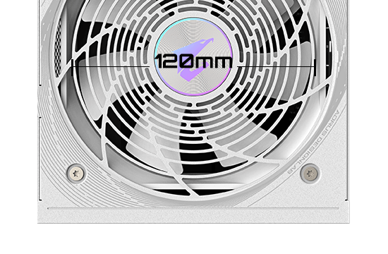 高效能 120mm 智慧 Fluid Dynamic Bearing(FDB)風扇,兼具安靜且長效耐用的運轉表現,並可在低負載(低於 50%)時停止轉動,達成通過 Cybenetics 認證、低於 20 dBA 的近乎無聲運作水準。