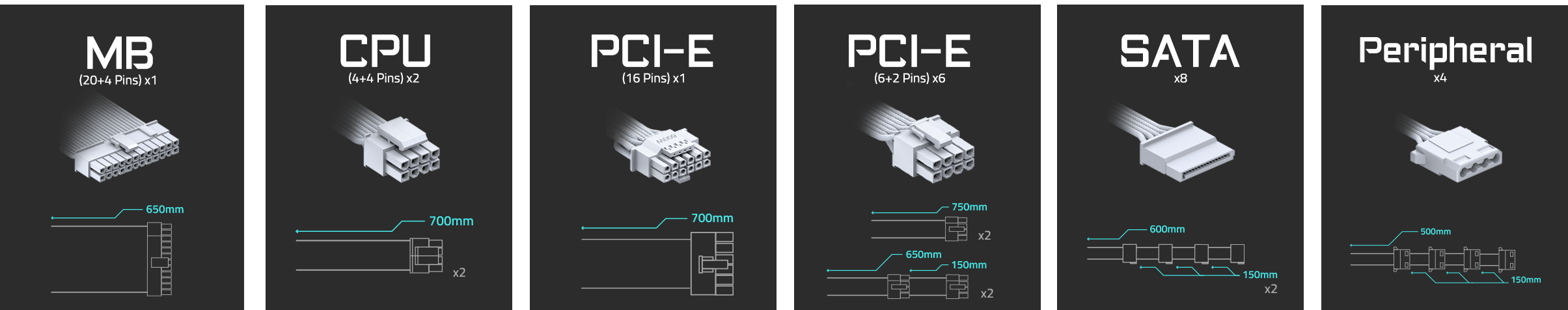 為了讓整個電腦系統能夠在任何狀況下都能穩定的運作,我們不但加入了OCP、OTP、OVP、OPP、UVP、SCP等保護設計,更通過各國的安規認證,來確保您的系統能夠穩定運作。