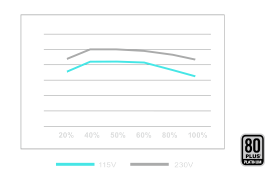 符合80 Plus白金牌認證確保在50%負載下,可以提供高達92%極佳的電源轉換效率。在更加節能的狀況下,減少廢熱的產生與降低風扇噪音。
