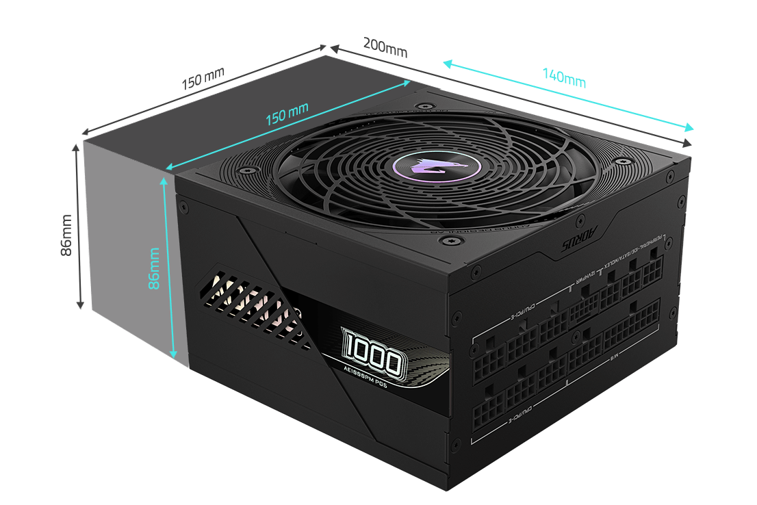 技嘉科技在散熱和材料選擇方面的工程專業技術,能夠將電源供應器縮小至令人驚豔的 14公分,即使是空間受限的機殼也能輕鬆安裝。