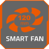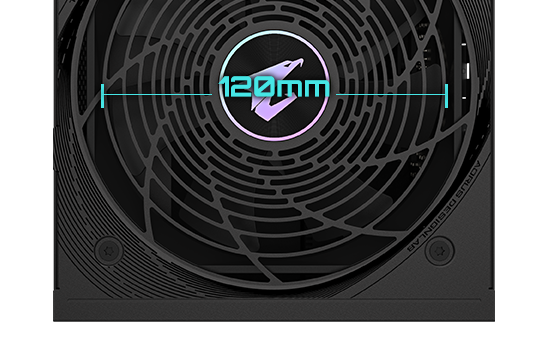高效能 120mm 智慧 Fluid Dynamic Bearing(FDB)風扇,兼具安靜且長效耐用的運轉表現,並可在低負載(低於 50%)時停止轉動,達成通過 Cybenetics 認證、低於 20 dBA 的近乎無聲運作水準。