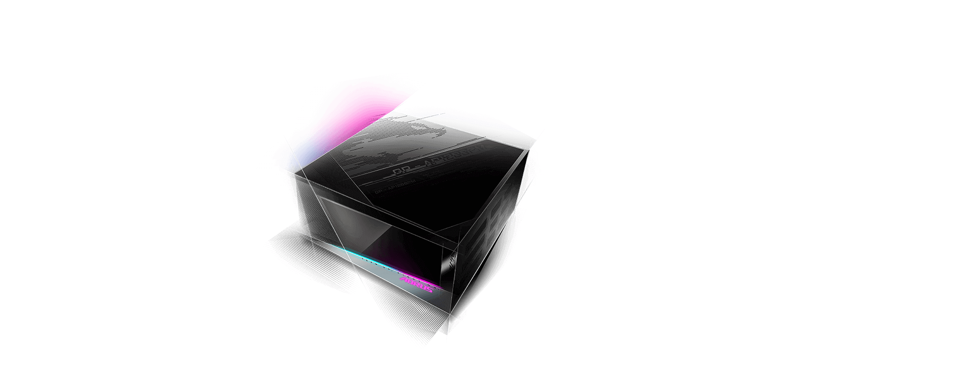在AORUS次元中,所見處皆由數碼重構而成,以光效的方式映射於產品之上,流動凝結,閃爍躍遷。