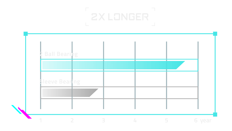 超大14公分風扇可以在維持最佳的散熱狀態下,將噪音降到最低。系統會偵測目前電源使用狀況與溫度,自動調整風扇轉速,維持電源供應的穩定度。雙滾珠軸承的風扇結構,可以提供穩定與更長的使用壽命。