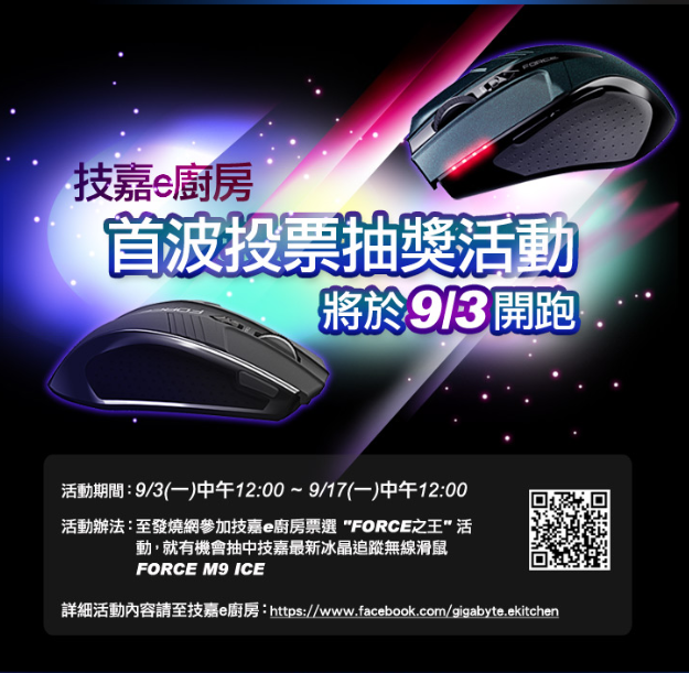 技嘉e廚房「FORCE之王」滑鼠票選活動9月3日開跑囉!