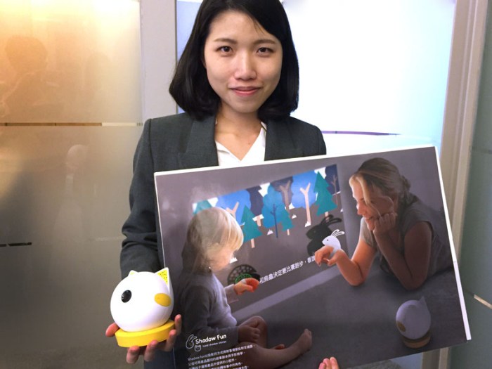 台科大工商設計所另名學生陳虹伶以作品「手影故事趣」獲得美化人生組金賞,透過投影設備和手機結合,可以讓親子互動剪影一起演戲,增加親子互動。陳虹伶說,科技在進步,要讓孩子不碰3C不太可能,但可以找到一個平衡點,因此她的設計雖會使用到手機功能,但手機只是一個工具,不會讓孩子黏著在手機上。
