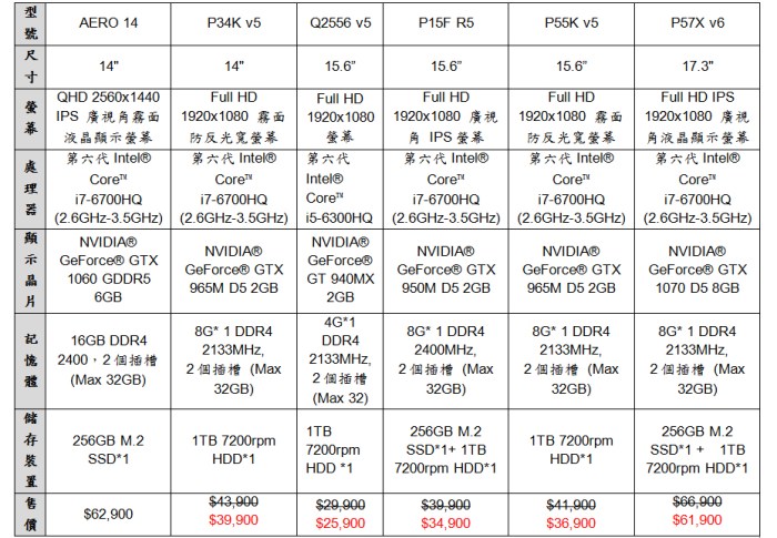 技嘉高性價比超值推薦款Q2556 v5、P15F R5、P34K v5