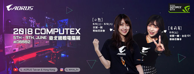 想了解更多技嘉AORUS電競產品的詳細展示內容及產品技術,請於2018年6月5日至6月9日的展覽期間,蒞臨位於台北世界貿易中心D0002攤位親身體驗,或透過AORUS社群平台,掌握最即時的現場脈動。