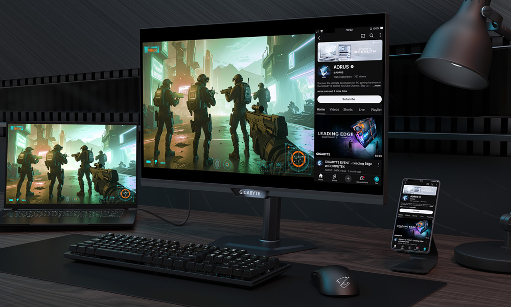 By directly connecting a keyboard and mouse, the monitor can function as a control center capable of controlling other devices such as laptops and cellphones via wired (HDMI, DP, Type-C) or wireless (Bluetooth) connections.