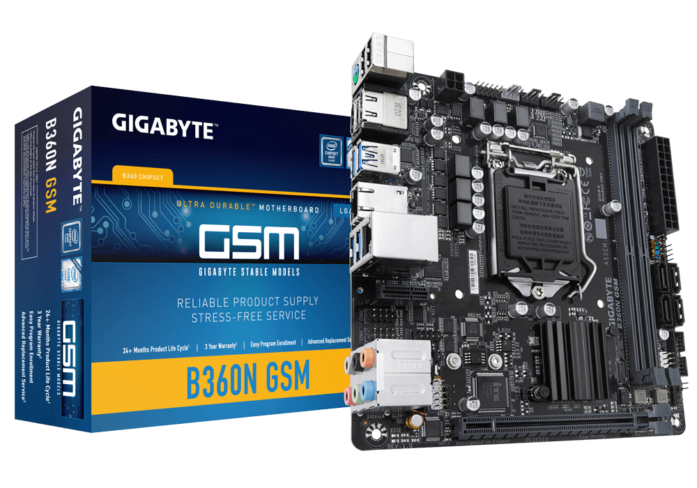 Intel B360 Ultra Durable motherboard with Intel® CNVi 802.11ac Wave2 2T2R WIFI Upgradable, Dual Intel GbE LAN with 25KV protection, PCIe Gen3 x4 M.2, 7 colors RGB LED strips support, DualBIOS™, CEC 2019 ready