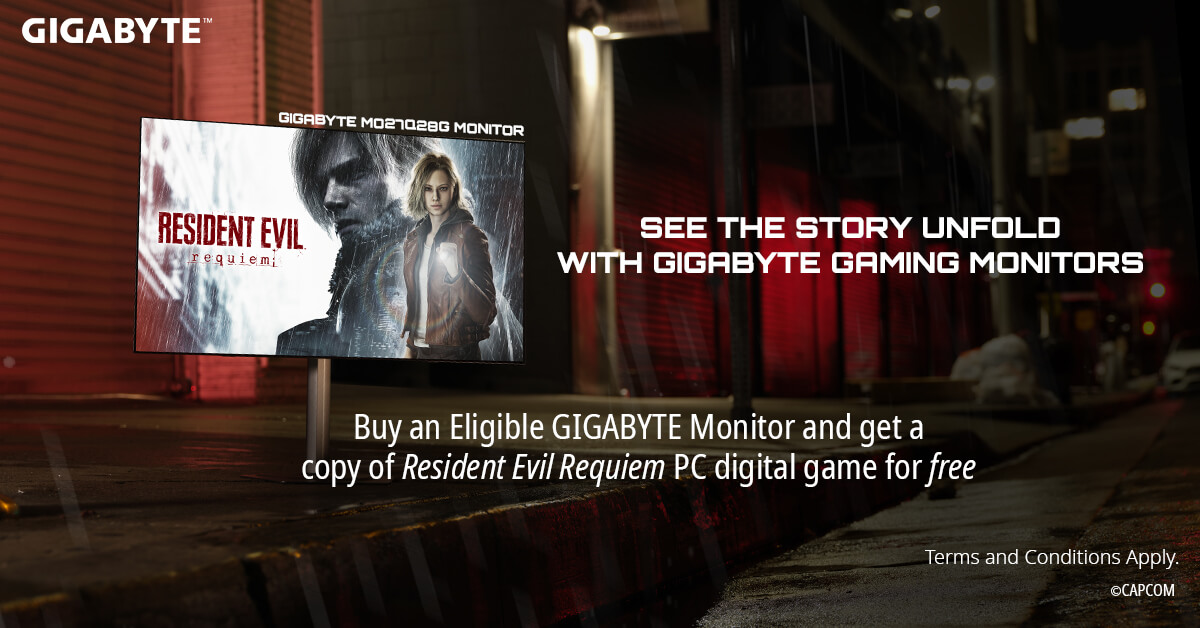 In addition to the custom rig giveaway, GIGABYTE will also offer a Resident Evil Requiem game bundle with select GIGABYTE gaming monitors, including AORUS FO27Q2, AORUS FV43U, AORUS CO49DQ, MO27Q28G, MO27Q28GR, MO27Q2A, MO27U2, MO32U, M27Q, M27Q2, M27Q3, M27UP, M28U, GS27QA, GS32QCA, and S55U, from February 20, 2026, to March 31, 2026. Customers who purchase eligible models can redeem a digital game code through GIGABYTE’s official redemption platform, adding even more value to their display upgrade.
