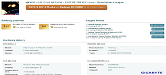 • Set new Ungine Heaven 2x GPUs Ungine Heaven World Record