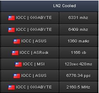 Pero eso no fue todo para la nueva integrante de la alineación de placas para overclocking de GIGABYTE. A lo largo de la semana que ha durado Computex, se han celebrado varios eventos y competiciones organizadas por diversas compañías como Intel, Kingston y G.SKILL, que han constituido un entorno perfecto para que la Z97X-SOC FORCE LN2 se encontrara cara a cara con sus rivales. Decir que la Z97X-SOC FORCE LN2 se convirtió en la mayor generadora de titulares de Computex no es un eufemismo. Aquí está la lista de logros conseguidos por las placas base para overclocking de la serie 9 en Computex: