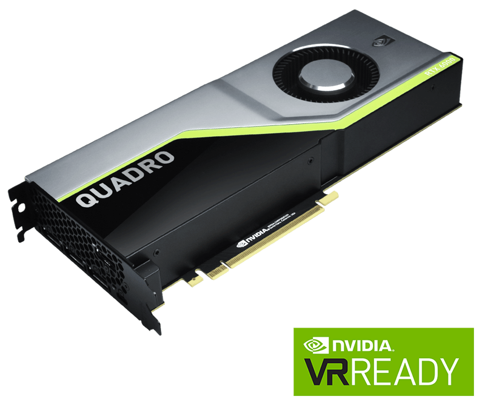 Equipped with 4608 CUDA cores, 576 Tensor cores, 72 RT Cores and massive 24GB GDDR6 memory, Quadro RTX 6000 can render complex models and scenes with physically accurate shadows, reflections, and refractions to empower users with instant insight. Support for NVIDIA NVLink enables applications to scale memory and performance with multi-GPU configurations. And with the industry's first implementation of the VirtualLink® port, Quadro RTX 6000 provides simple connectivity to the next-generation of high-resolution VR head-mounted displays to let designers view their work in the most compelling virtual environments possible.